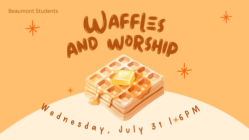 Hey Students (completed grades 6-12)! Join us for the last Wednesday night of July for waffles, games and worship. See you there!